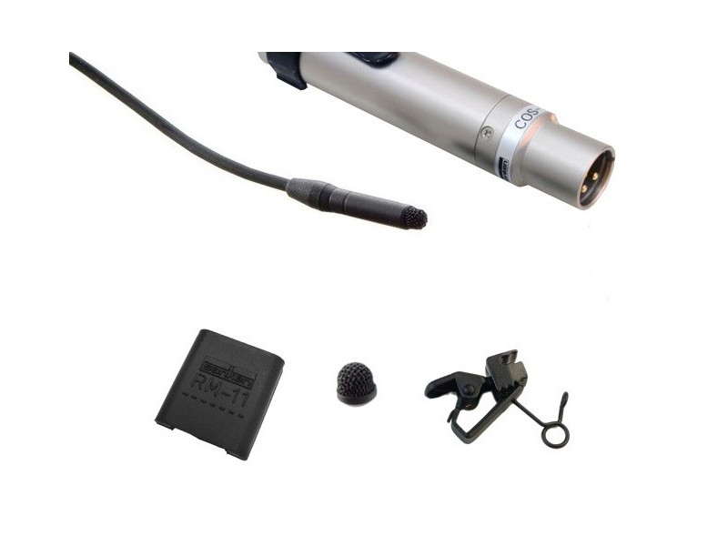 Lavalier Microphone operated by both AA battery and P12V~52V, XLR-3M output, sensitivity 2.1mV, 3m cable, with accessories.