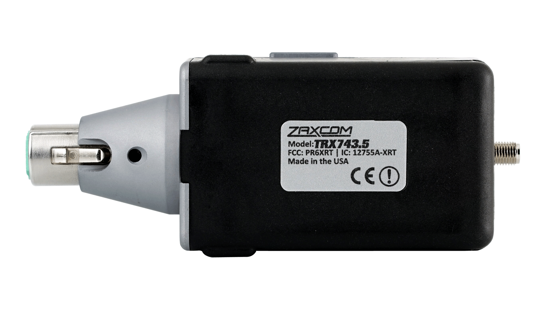 The TRX743 is a wide-band plug-on style digital wireless microphone with interchangeable cones to support all professional microphone varieties – mono analog, stereo analog, AES and AES42 – making it an ideal choice for wireless transmission directly from boom poles or handheld microphones. The TRX743 features the new Zaxcom High Density (ZHD) Modulation. ZHD Modulation allows up to 10 channels of wireless to be operated in only 1 MHz of spectrum space. Channel spacing will vary based on the receiver you pair it with.