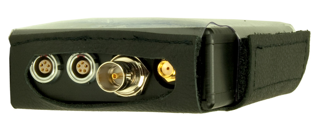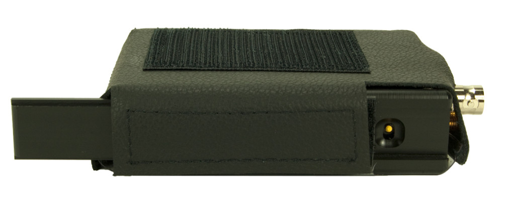 The Pouch for Ambient Lockit from Ambient Recording is a leather pouch included within the purchased parts package. This leather pouch has a transparent foil window, cut outs for connectors and on/off switch, and a double-faced adhesive hook-and-loop tape (touch fastener).