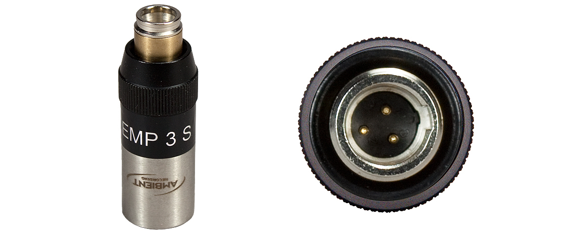 The EMP3S Electret Microphone Power Adapter from Ambient Recording allows hardwired use of a lavalier mic by converting phantom 48V to 5.6V electret power, and outputs an electronically balanced signal with low impedance. This adapter is designed for use with AKG microphones and converts a 3-pin Switchcraft connector to a standard 3-pin XLR male connector.