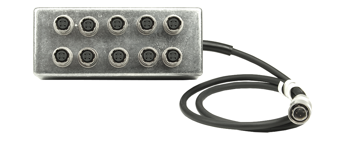 Hirose distribution box, 10x4-pin sockets w lead to Hirose4M