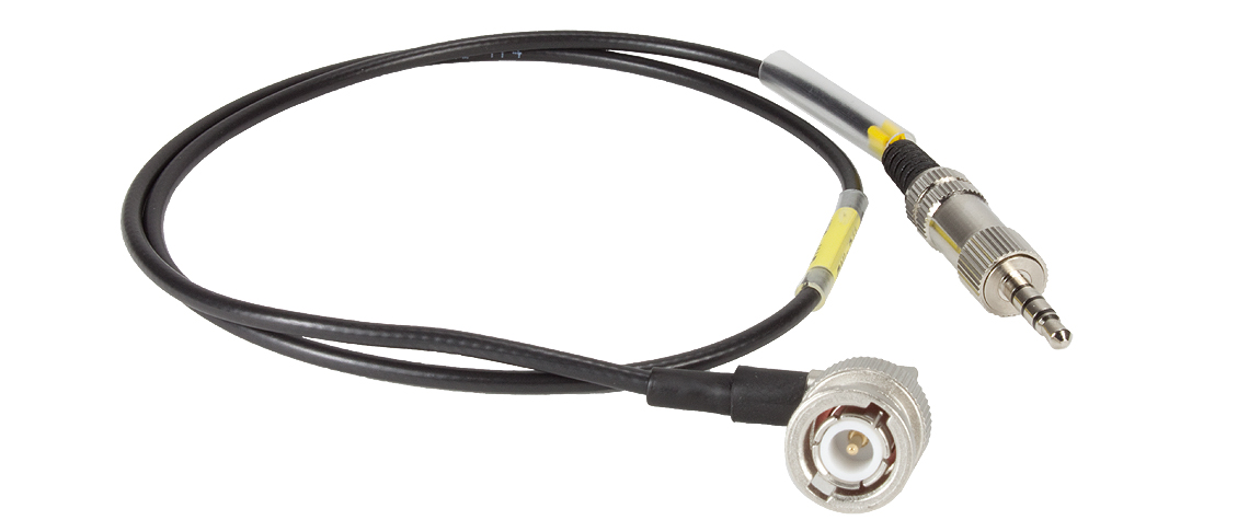 The 23.62" ITC5-INB Input Cable with BNC/M Right Angle Connector to 3.5mm TRRS Jack from Ambient Recording is used to feed time code into the SD 552 production mixer, and display it on the iPod touch, iPhone 5, and iPad mini using the Ambient TC-App.