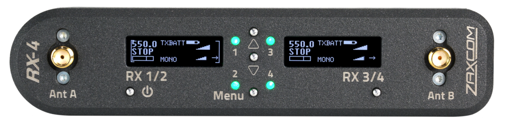 The MRX414 broke new ground as the first receiver to receive audio from four separate transmitters. Now with the RX-4, the MRX414 can be used as a standalone portable receiver outside of a host unit, making the combo a great way to get started with the Zaxcom Digital Recording Wireless ecosystem.