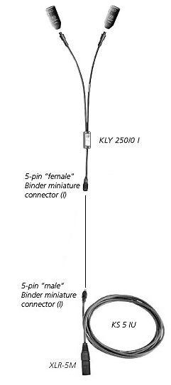 This cable allows two CCM-L compact microphones to be connected to a single two-channel output cable. The standard length for the KLY's two microphone input leads is 250 mm.