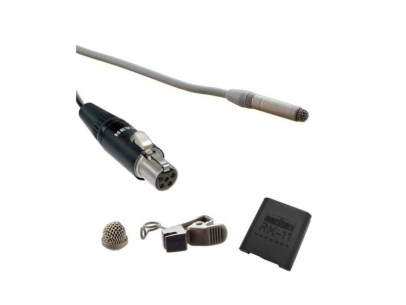 Lavalier Microphone with TA5F connector for wireless transmitter, 9dB attenuated sensitivity, 1.8m cable, with accessories.