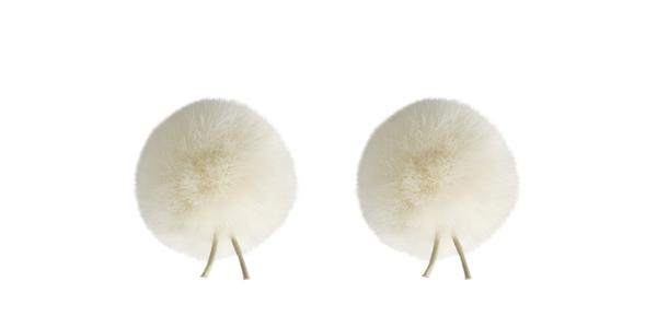The Twin Windbubbles from Bubblebee Industries is a set of two miniature imitation-fur windscreens that easily fit on lavalier microphones with a diameter of 0.2 to 0.3" (5 to 8mm). The tiny elastic-wire legs make it easy to mount them on the microphones. They can be used to reduce wind noise and vocal plosives in outdoor environments, and are designed to not fall off during use. Examples of compatible microphone models for this windscreen include the Sanken COS-11 (with metal windscreen), Countryman B3, DPA 4060 (without windscreen).