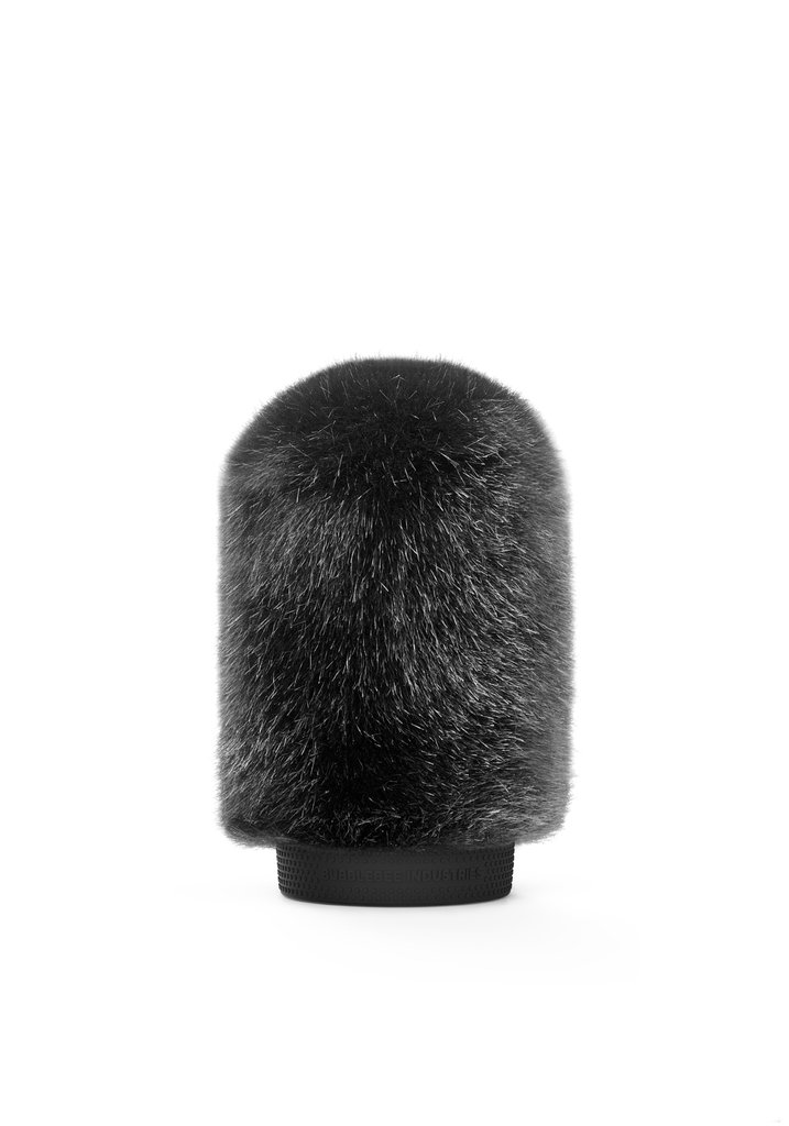 The black, small-sized Windkiller Short Fur Slip-On Wind Protector for 18 to 24mm Mics from Bubblebee Industries is a wind protector that fits shotgun microphones. It can be used in outdoor environments to reduce wind noise when capturing audio for video, broadcast TV, ENG applications, and more.