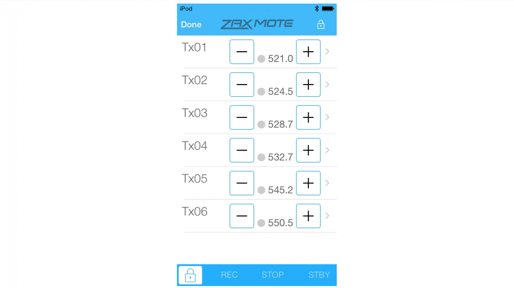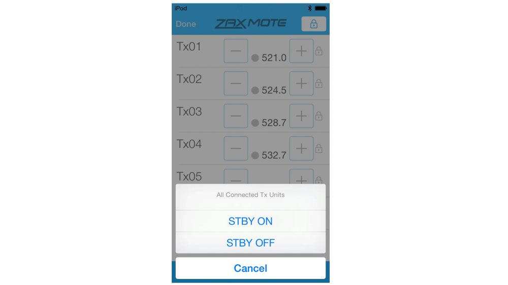 ZaxMote is an IOS app for easy remote control of your Digital Recording Wireless Transmitters. Controllable parameters include changing frequency and gain, putting transmitters in and out of standby mode and starting / stopping the internal recorder. ZaxMote works in conjunction with the QIFB option of any QRX receiver via a Zaxcom Bluetooth Dongle that’s plugged into its serial port.